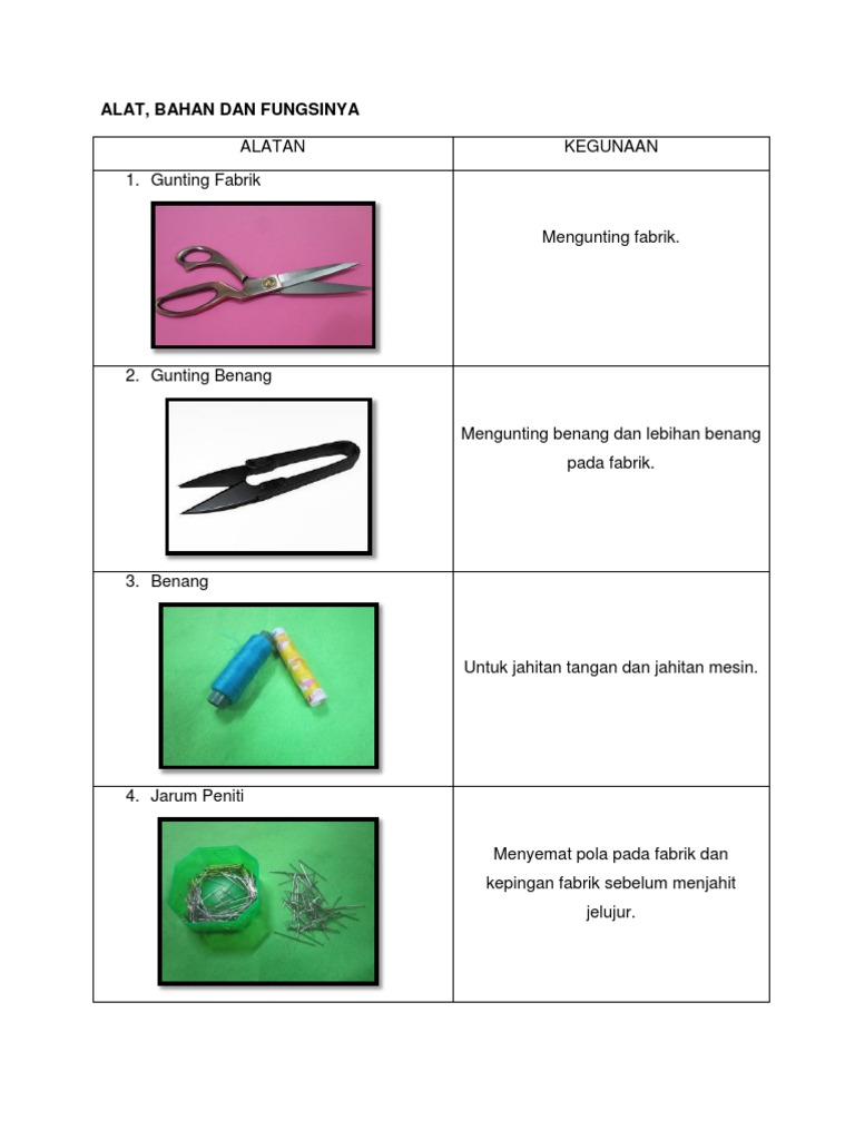 Alatan Jahitan Dan Fungsinya Worksheet